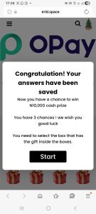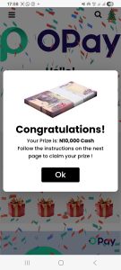 There is no official announcement from OPay supporting this offer. Checks on OPay’s verified website, mobile app, and official social media accounts show no promotion or cash grant of this nature. OPay typically announces genuine promotions directly within its app or through its verified channels—not via random links shared on WhatsApp.