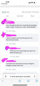 After applying, users see Facebook-style comments from supposed beneficiaries who claim they received relief packages. However, these comments are fake and manipulated to appear as if they are from real Facebook users.